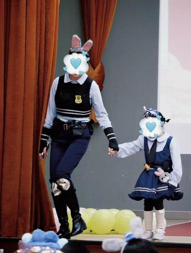 这些精心准备的装扮不仅让孩子们沉浸在角色扮演的乐趣中,也为现场增添了缤纷色彩。穿梭在人群中,可以看到家长们不时蹲下身为孩子整理服装,眼中满是温柔与骄傲。
